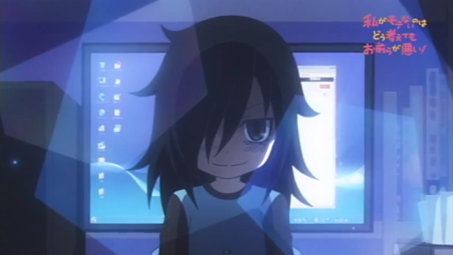 No matter how I look at it, It’s you guys fault I’m not popular– is a comedy aimed straight at dysfunctional geeks, or former dysfunctional geeks, who can laugh at their own faults and take them with a grain of salt. It revolves around a socially inept mess of a protagonist who goes through life repeating the cycle of self-embarrassment and loneliness while learning nothing from it, and garnished with anime and pop culture references and parodies. It’s a show that hits painfully close to home for anyone who has social anxieties, yet playful enough that it remains morbidly funny rather than becoming straight-up depressing, most of the time at least. It’s also pretty blunt about who’s really at fault for all the main character’s problems.