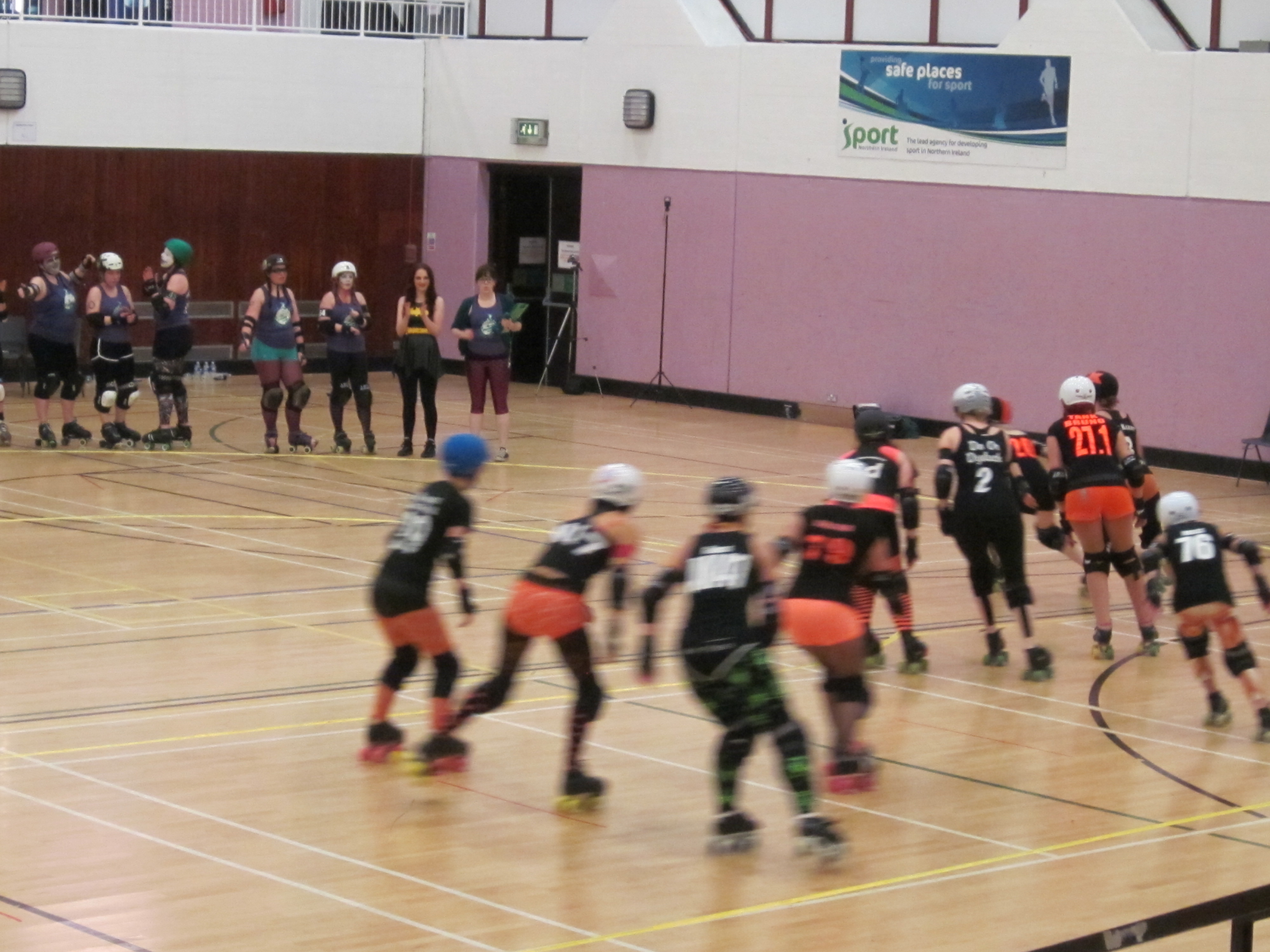 We where not so lucky in the second match. No 20 President Garfeild of the bashing Pumpkins was one of the best players we saw that night and she dominated the match, that’s not to say that the home team played badly, on the contrary the Belfast Banshees put up a solid defense, especially number 88 – Sylvia Wrath. This was a very tight match where the Banshees didn’t give up in the last few minutes. These girls are as touch as nails and showed some great character sadly the score finished with 130 for the Banshees and 189 for the Pumpkins, well there is always next time.
