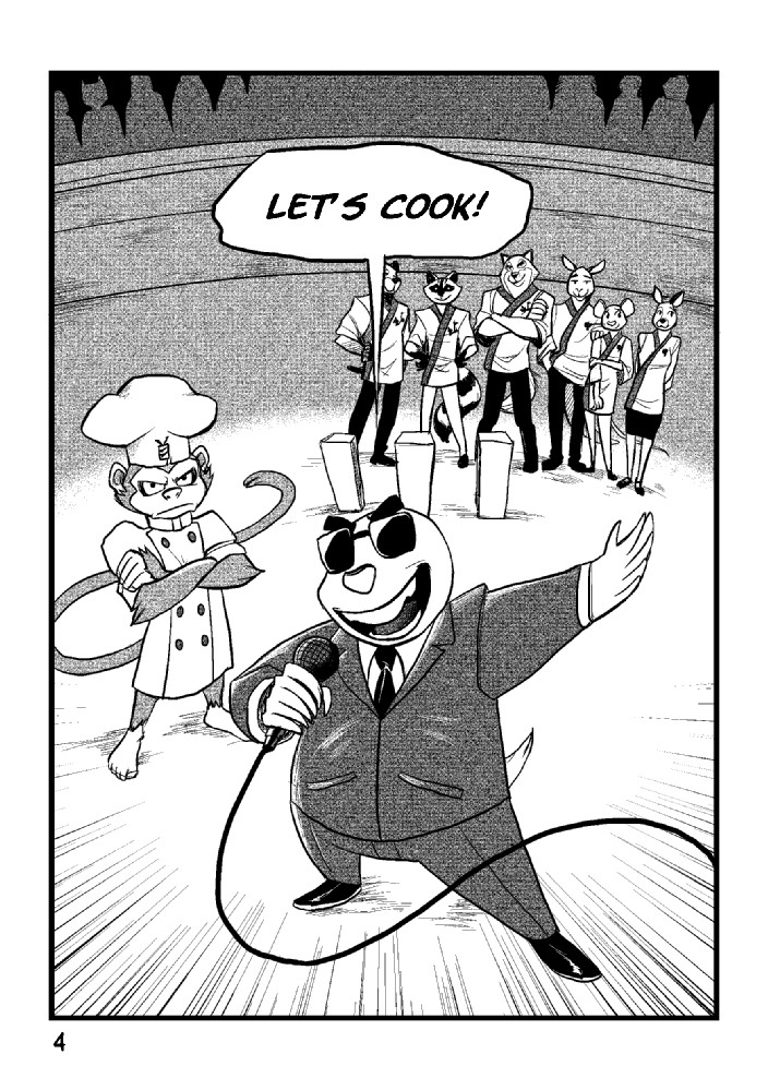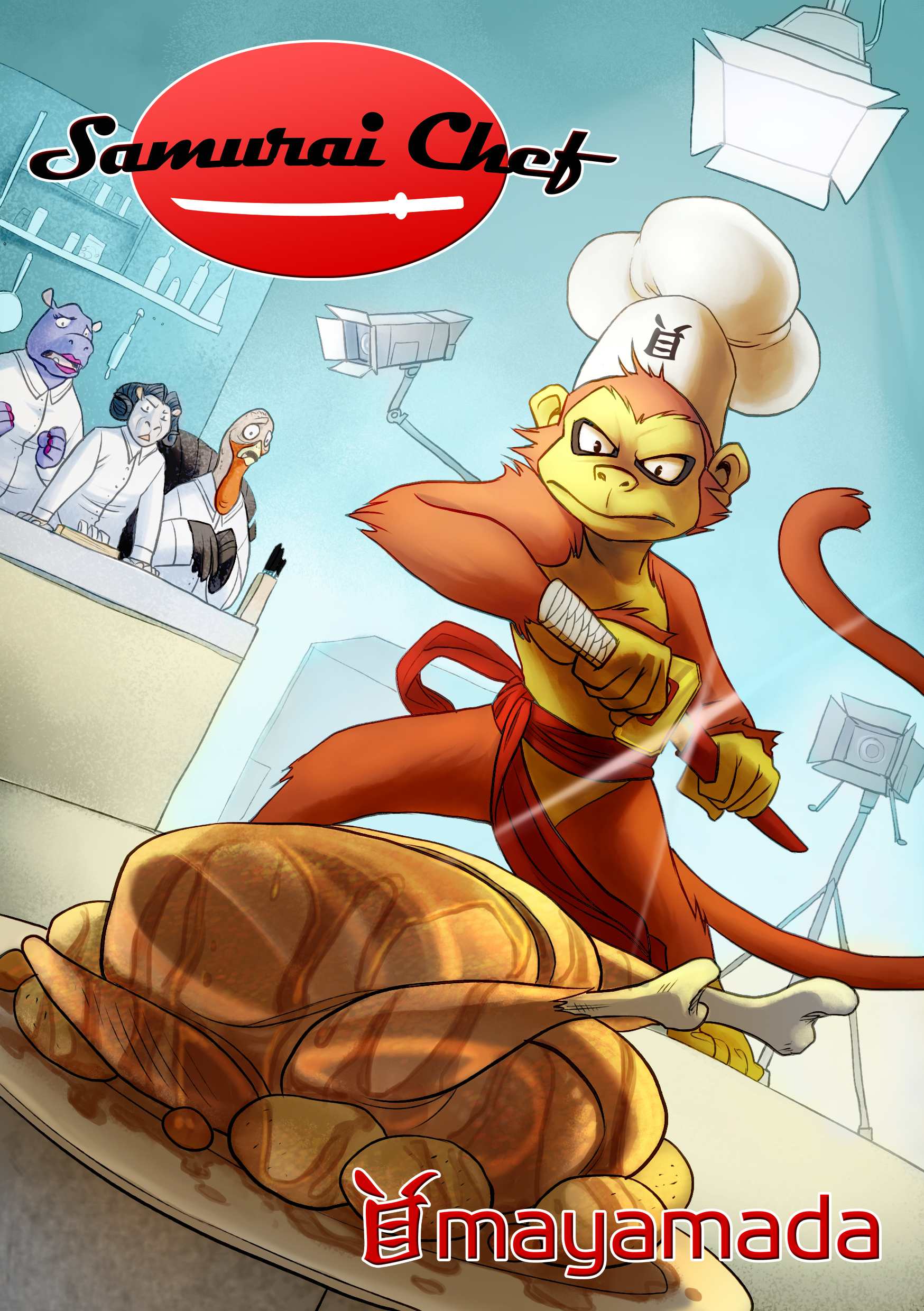 There is a little of the Iron Chef in our Samurai Chef show. We’ve watched a lot of the Food Network and wanted to parody the cooking show theme in general with this story.