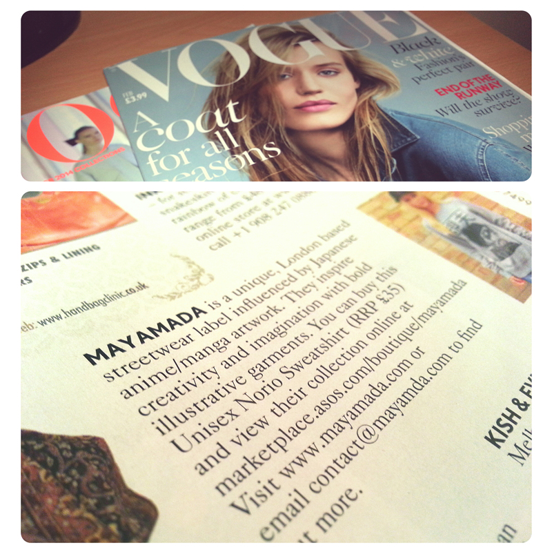 More recently the Norio t-shirt / sweatshirt design has been a big hit with customers. That design is based on one of our more popular characters Norio from the 11th Hour and was recently featured in British Vogue magazine.