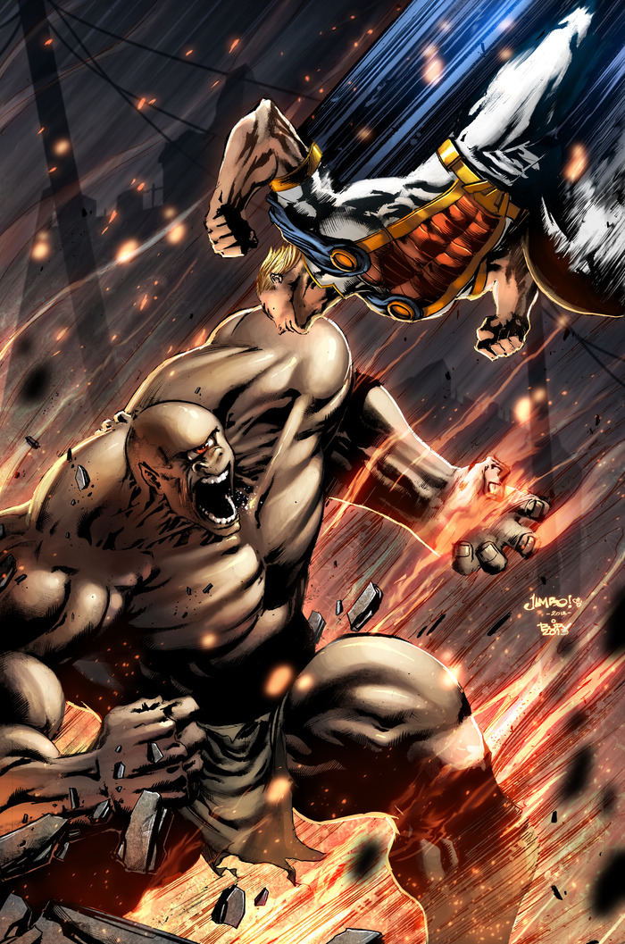 As Joe puts it, The Mighty Titan is a 5 mini issue series that essentially takes his experiences and wraps them in a superhero shell. This isn’t autobiographical. He has researched and talked to other cancer survivors to try and get the feeling of what other people have experienced. He created Titan in 2004 during his first bout with Kidney cancer. It was a tough decision for him to take some of his personal experiences and put them to paper in order to entertain and possibly allow people a glimpse of what some people go through while battling this potentialy deadly disease.