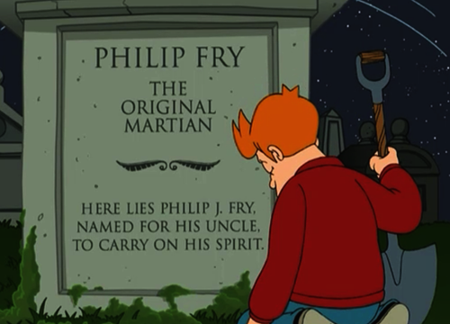 ‘The luck of the Fryish’ – This one is just brilliant. It covers a lot of topics but mostly deals with the things we never say. We see that Fry and his Brother Yancy where rivals in everything and when Fry discovers a seven leaf clover that gives him incredible luck he hides it so no one can have it. Years later Fry discovers that after he disappeared his older brother stole his name and lived his dream life, going to Mars, being a rock star and even mayor of New York. Fry goes to his brothers grave to retrieve his clover, which Yancy was buried with, he then discovers that this is not Yancy’s grave, its Fry’s nephews who was named for him, letting Fry know, 1000 years late, that his brother really loved him.