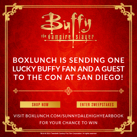 The Sunnydale High Yearbook Contest has launched on BoxLunch.com. With a prize of a trip to San Diego Comic Con fans will be rewarded for uploading their high school class photos — and providing their best Buffy caption in the form of a “senior quote”. Participants will be able to share their submissions across their Facebook and Twitter feeds. Contest details and rules will be found on BoxLunch.com