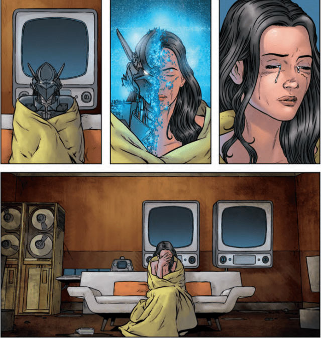 Wild Storm truly is an enigma series,so much is happening across its wild pages but nothing is being told to us. The Engineer is on the run and our heroes and villains are all out to get her. She is alone and afraid, showing how all too human she is even with her machine enhancements. Her fragility is a nice touch and I really appreciate the less sexual redesign they have brought to her character, it just falls in line with who she currently is and what she can currently do. Gone is the God like power house from The Authority and here we have an all too human character who just needs help. I feel I should mention she is still a powerhouse just not like how she was before.