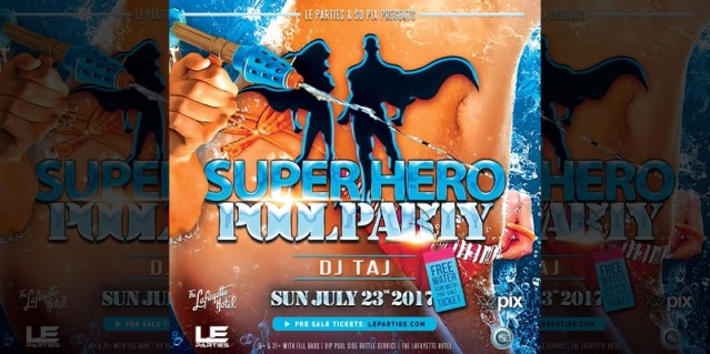 LE Parties is back with another party you don’t want to miss, the Super Hero Pool Party, In conjustion with Comin-Con San Diego. The second year in a row, Cosplay comes to The Lafayette for some fun in the SUN! Closing out Comic-Con Weekend, the great Water Gun Fight! Free water guns for Everyone with Pre-Sale Tickets!