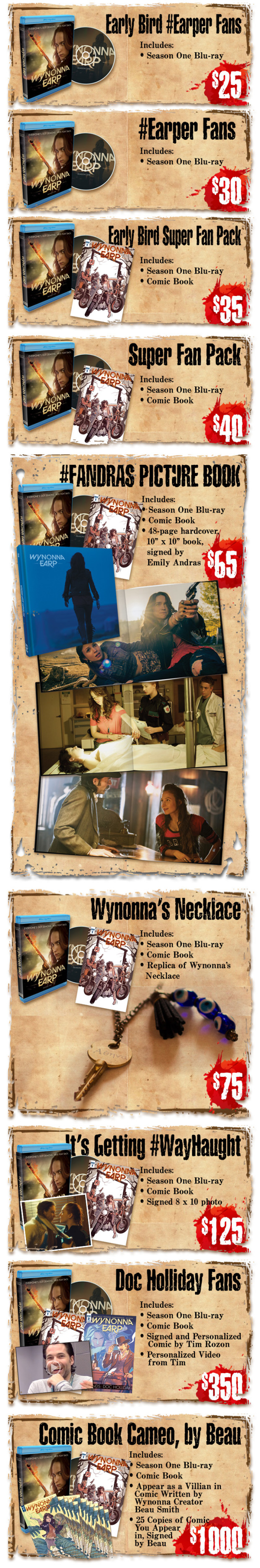If you are a fan of the TV series Wynonna Earp then here is your chance to not only own the first season on Blu-ray exclusively through their Indiegogo campaign but also have a chance to join their party at San Diego Comic-Con International in July and have lunch with then cast in downtown San Diego. So don’t miss your chance to own the Blu-ray as it will only be available on Indiegogo, with delivery expected in September 2017. The Blu-ray is coded region 0 (meaning they play worldwide) and can be shipped anywhere expect Australia. The fans voiced their wishes to own the first season and now you can own all 13 episodes, the Blu-ray also includes behind the scenes content and interviews with the cast.