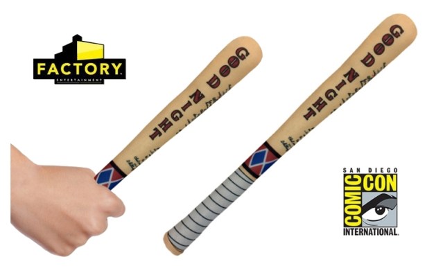 Knock stress out of the park with this San Diego Comic-Con Exclusive, the Harley Quinn SWAT™ Good Night Mini-Bat! Measuring 12″ in length, this plush collectible miniature bat is the perfect size to relieve stress, fidget with or even keep annoying co-workers or family members at bay in a soft and friendly way! This exclusive is based on Harley Quinn’s weapon of choice, her trusty ‘Good Night’ baseball bat from Suicide Squad, and is a scaled version (without sound) of the wildly popular full size SWAT™ Good Night Bat, also available to order on the Factory Entertainment website.
