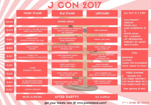 The first convention I ever worked was Eirtakon and every year since I started this site I went back, that’s why last year I was a little sad to see that Eirtakon was officially over. I had thought too myself no more weekends on November filled with cosplay, anime, gaming and candy (well no more outside of my home). Fortunately J-Con has arrived on the Irish nerd scene to give us our November fix. On the site they have promised an exciting mix of : special guests coming from all over, exciting panel discussions, some of the coolest artists, traders and craftspeople. And a few oddities too? Plus a lot of Cosplay