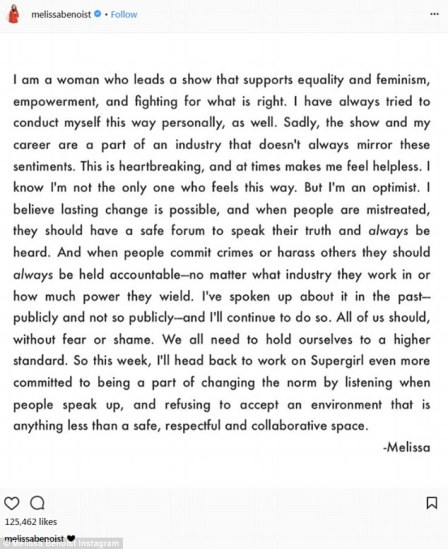 After 19 harassment allegations where made against Andrew Kreisberg production has halted on several Arrowverse show. This situation came to light when Melissa Benoist bravely came forward to condemn Kreisberg, in the statement below.