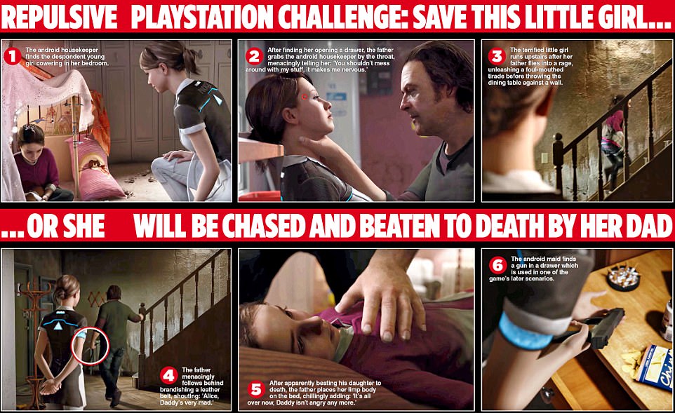 Now as you can see the video is actually very shocking and quite disturbing, but it is also one third of a larger story. The game is set in the not to distant future where we have created Androids and they work and serve us in a variety of ways, throughout the game you play as three different characters, all of whom can die and the game will move on. The Characters are Markus an android who takes it upon himself to free others like him from bondage, Connor an advanced police model android and Kara the Android Maid who has caused such controversy. The Mail Online would you have you think that this game is about watching a man beat a child, but no this is incorrect. The game is to give us a social commentary on where A.I is heading and how we perceive our place in the grand scheme of things. (the video below shows this aspect of the story)