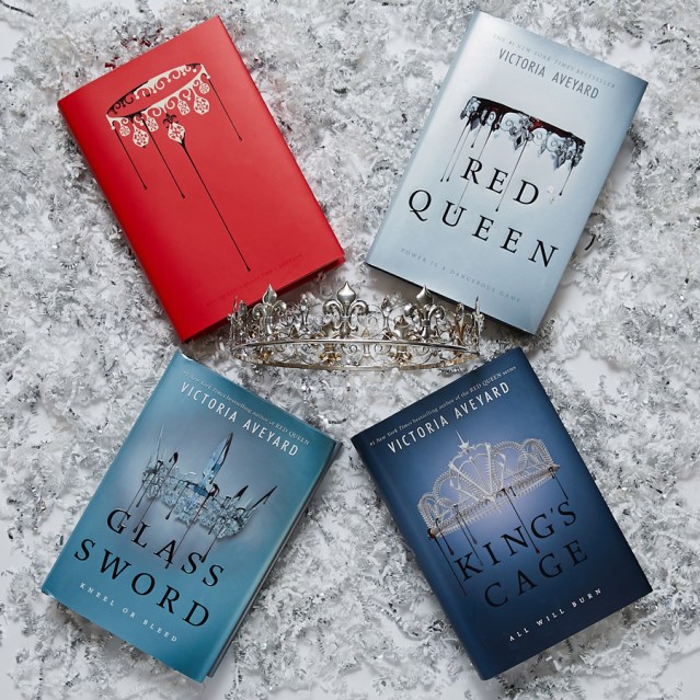 - One copy of each of the following books: Red Queen Collector’s Edition, Red Queen, Glass Sword, King’s Cage, Cruel Crown, Red Queen: The Official Coloring Book