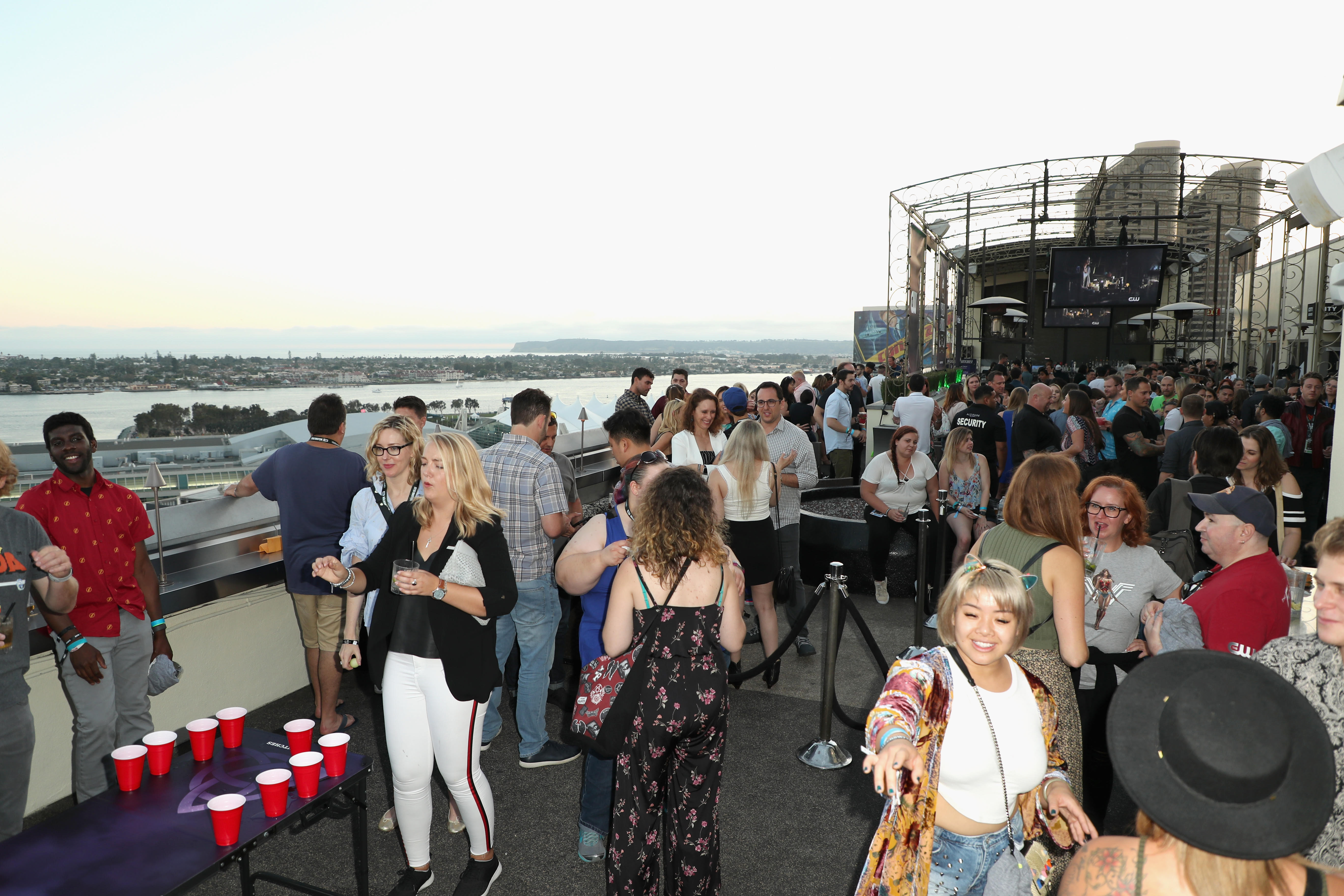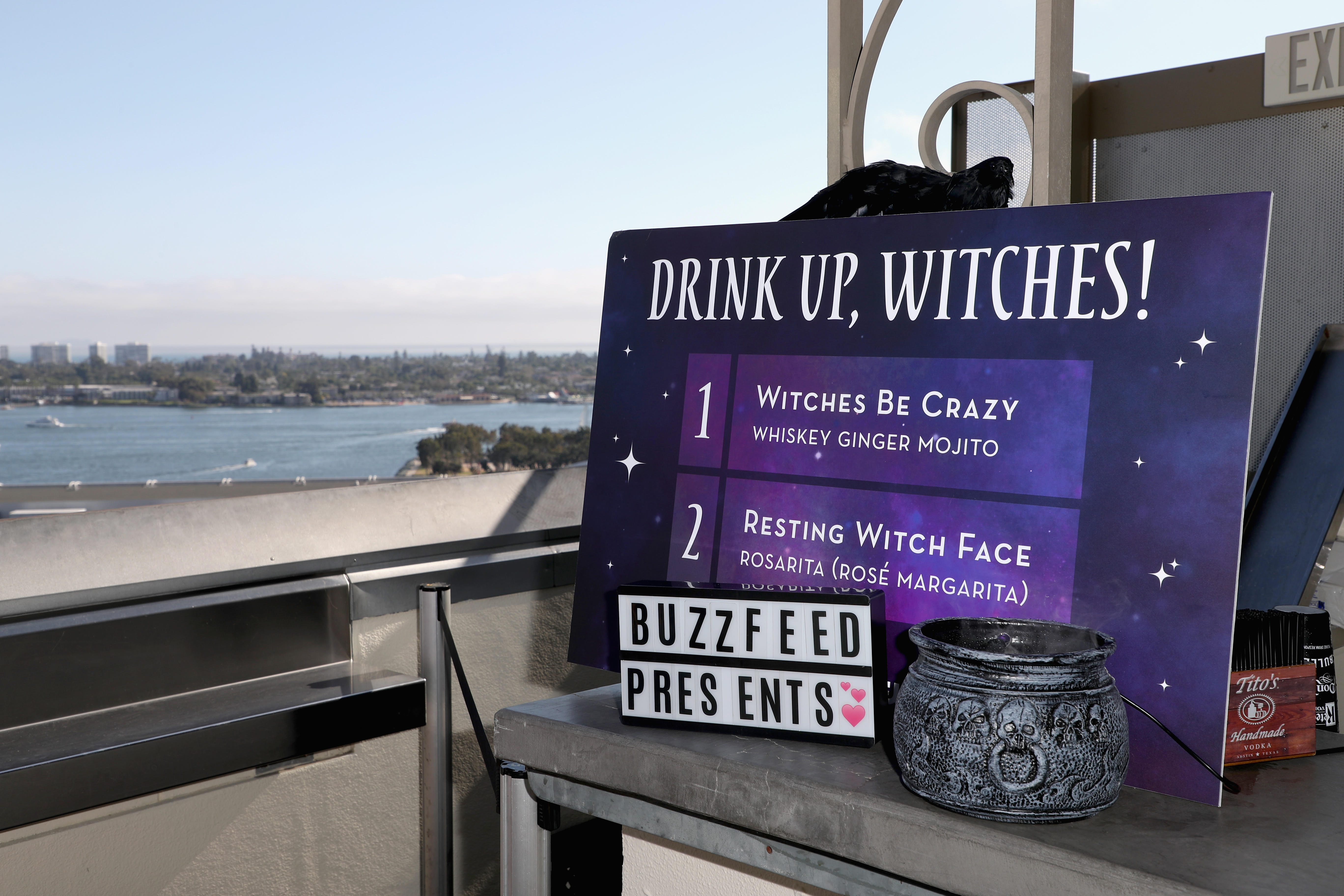 While the drinks were flowing, a variety of food was brought out regularly to keep people from getting hungry. Items included mini tacos, chicken and waffles, ravioli, etc. Guests could enjoy their drinks/food and the beautiful view from the rooftop at specially decorated tables. Some had fake candles. Some had mini Ouija boards. BuzzFeed and The CW really do deserve praise for committing to their theme.
