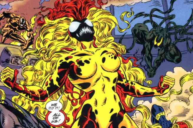 Scream like her villainous counterpart Riot is another creation of The Life Foundation, she was the unofficial leader of their team of Symbiote’s. Scream’s superhuman abilities stem from her alien symbiote. The beast can mimic clothing and camouflage Donna. She often uses her ‘hair’ as a weapon, to wrap or tangle enemies. Like Spider-Man and Venom, Scream has wall-crawling and web-slinging abilities, and also boasts an early-warning sense. Scream also possesses some degree of superhuman strength, the exact limits of which are unknown. Unlike the rest of her brood she would go on to be a thorn in the side of both Spider-Man and Venom. (Fans of the Universal Studios Spider-Man ride will be familiar with her)