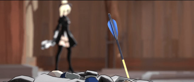 I will say this for Dillongoo as much as the animation really impressed me it was their art style and cinematography that hooked me in. Take a look at the shot above. It was a fantastic choice to have Mercy appear out of focus before she goes on her kill spree, in cinema this is usually used to emphasis a protagonists focus on an objective, here it is also used for brilliant comedic effect.