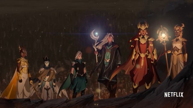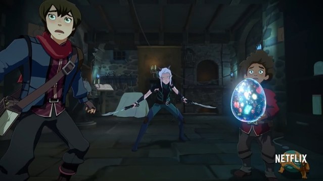 A hero is only ever as good as their villain and in this I feel the Dragon Prince has its greatest weakness. It seems that the kings chief adviser Viren will be the villain and yes he has some villainous attributes but I am beginning to wonder if he is as evil as we are lead to believe, it is just when we first meet him he is a rather nice fellow but then 4 episodes in and he is planning a coup, this just makes no sense, which makes me hope that instead of an obvious villain the series may do the mature thing and have antagonists. Speaking of antagonists there are Viren’s children Claudia and Soren, tasked with tracking down out heroes, they have potential for great development, especially since they themselves will be most tested by the upcoming events.