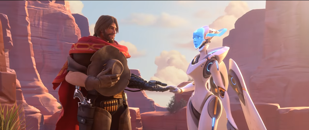 Route 66 is one Overwatch’s most fun and iconic levels, it has one team trying to loot a train wreck while the other defends it. Though in game it never explains how things got that way. This short film not only does this but helps display how awesome McCree is, introduce us to Ashe and Bob (Hero 29) while teasing a future upcoming hero. It does all this while being entertaining, so yes this is one you need to watch. Below are a few of my highlights from the short. If I missed anything comment below.