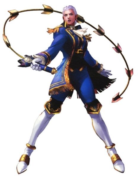 Isabella Valentine (イザベラ・バレンタイン Izabera Barentain), commonly called Ivy (アイヴィー Aivī), is a fictional character in the Soulcalibur series of video games. As introduced in Soulcalibur, Ivy was raised by the Valentines, a noble family in London, England. Ivy’s father became obsessed with the cursed sword Soul Edge, and worked himself to death. Her mother died shortly afterward, and revealed to Ivy that she was not their biological daughter. Becoming an alchemist, Ivy learned of her father’s obsession and decided to destroy Soul Edge. She created an animated, segmented sword, bringing it to life by unknowingly summoning Soul Edge’s current host, Nightmare, and was convinced to become one of his servants without realizing he wielded the blade she sought. After learning the truth, and that her real father was the sword’s previous host Cervantes and her to be its next, she departed. Continuing her quest to destroy the sword in later games, Ivy was attacked by Cervantes and her soul consumed in Soulcalibur IV. Using an artificial soul to keep herself alive, she acts as a teacher to younger warriors when Soul Edge re-appears years later.