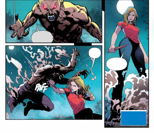 Right off the bat we get to see Buffy, Willow, Giles and Xander and it’s like sitting down with a few old friends. Not only do they all look the part but they sound the part too. The dorky banter of our two favorite nerds and the stern dialogue from Giles really helps shape this world into the one we all missed. Still for anyone who is worried that this series has reshaped the same old characters in a vein attempt to cease our cash then I can allay your fears, for the new Buffy series has updated the characters ever so slightly to help them fit into this new and mixed up world.
