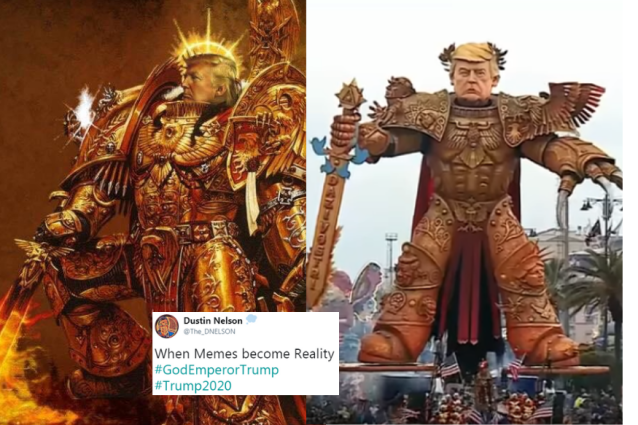 I know there will be many out there who will see me talking about this as me getting political and in this instance its a firm NO. I am talking about this because it’s me going all Warhammer 40k fan boy. Love him or hate him Donald Trump has quite the ego on him, weather or not he deserves this is not up to me, I will let you all decide but the choice to depict him as the God Emperor of Mankind is quite the spectical.