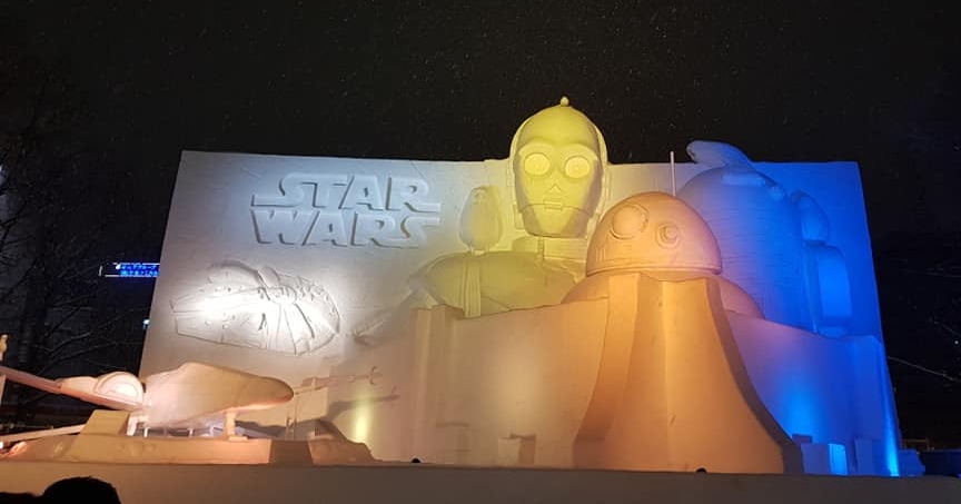 Of course the major highlight was the sculpture of the Star Wars Droids. Throughout the nights of the festival we where treated to this behemoth of a tribute to one of my favorite franchises. Only did they create a massive R2D2, CSPO and BB8 but they also built an X-Wing out of ice. If you where patient enough you could even get your photo taken in it.