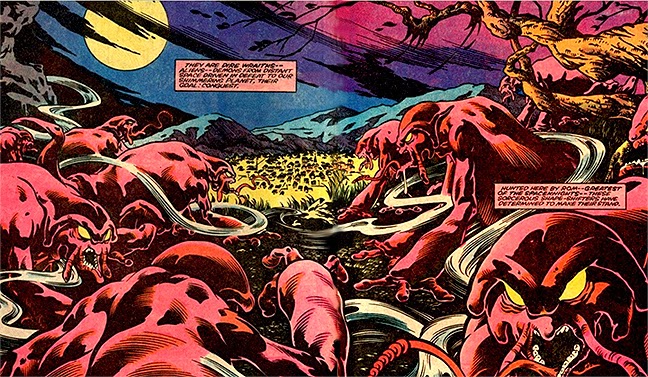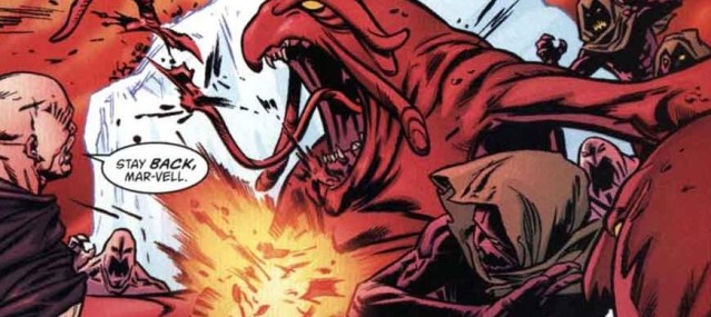 Yes we do, The Skrull are one such example. The Eternal and base line “Normal” Skrulls would eventually interbreed and part ways with the Deviant Skrulls who would hence forth be known as the Dire Wraiths. Like the Skrulls, the Wraiths are shapeshifters, able to take the forms of practically any other creature. Normally the Dire Wraiths have an obese, reddish body with large, pupil-less eyes, small beaks, ‘hands’ that resemble small pincers and tentacles; clawed feet, and thick tails. They also have long, drill-like tongues similar to that of the cone shell mollusk, that they use to suck out the brains of their victims, which allows them to gain their memories.