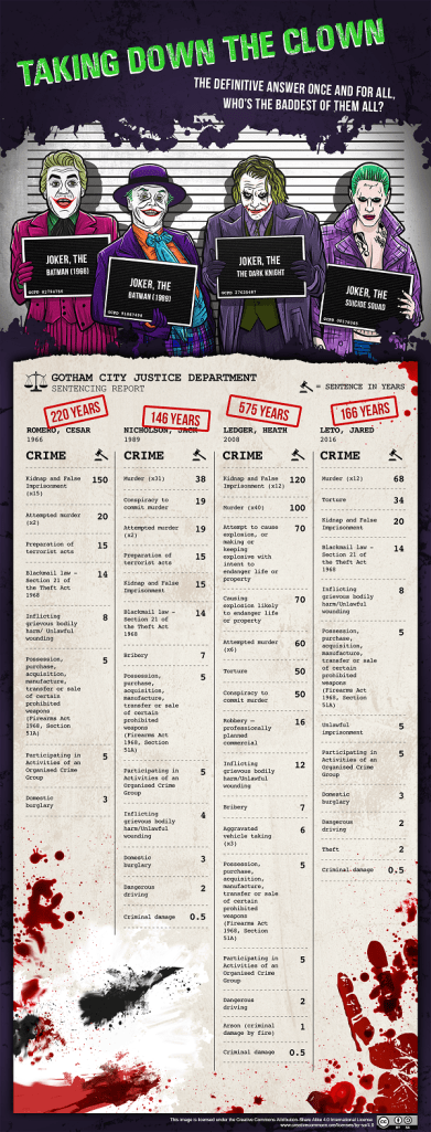 Fans for years have argued the point over and over again. Some love Nicolson, others would die for Legder and few stand beside Leto. But now we have a definitive answer for who is the most dangerous. The in depth analysis, conducted by Vanquis Bank, examines every crime and assigns prison sentences based on current US and UK law.