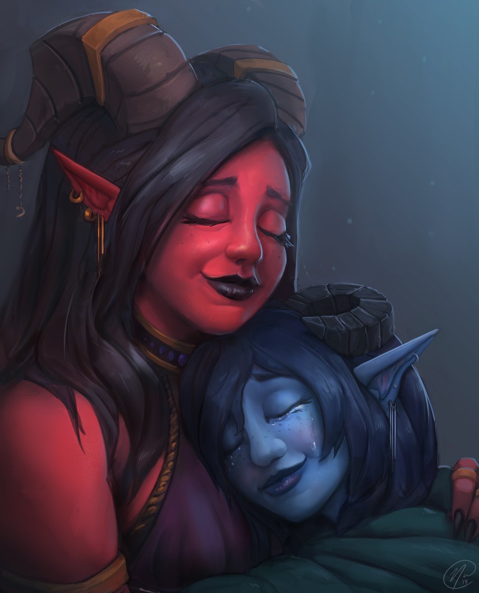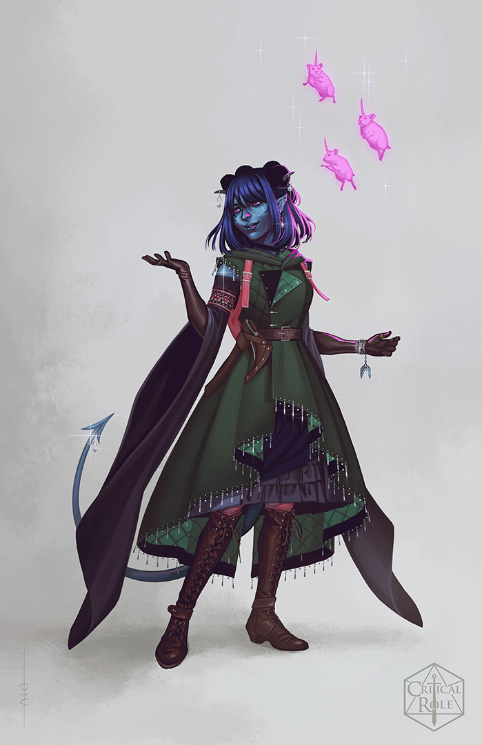 In Critical role lore Jester is the playful and fun daughter of a famous Tiefling Courtesan known as the Ruby Of The Sea. She spent a lot of her early life secluded away in order to protect her mothers reputation. Though the two do genuinely love each other.