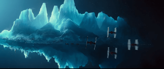 This is what I love a group of Tie Fighters heading towards mysterious ice structure in space, that is fucking awesome.