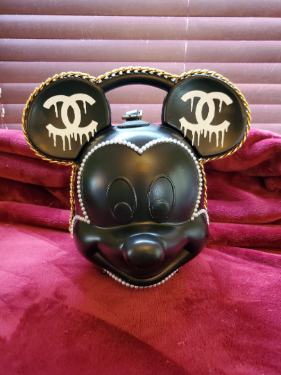 This is a vintage Mickey Mouse container that has been converted into a one of a kind artistic purse. Because of this, there may be some original defects that come from the original being 40-50 years old. Refurbished and redesigned to be an art piece as well as a fashion accessory. There will only one of this design made so this is an original piece. The inside is small and this is more of a decorative purse than anything highly functional.