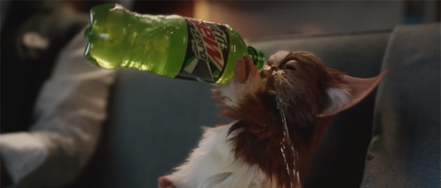 Anyway long story short, Gizmo tries to drink Mountain Dew, spills some on himself and then chaos ensues.