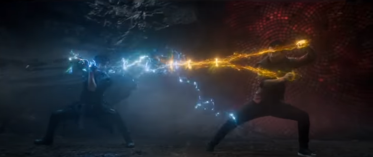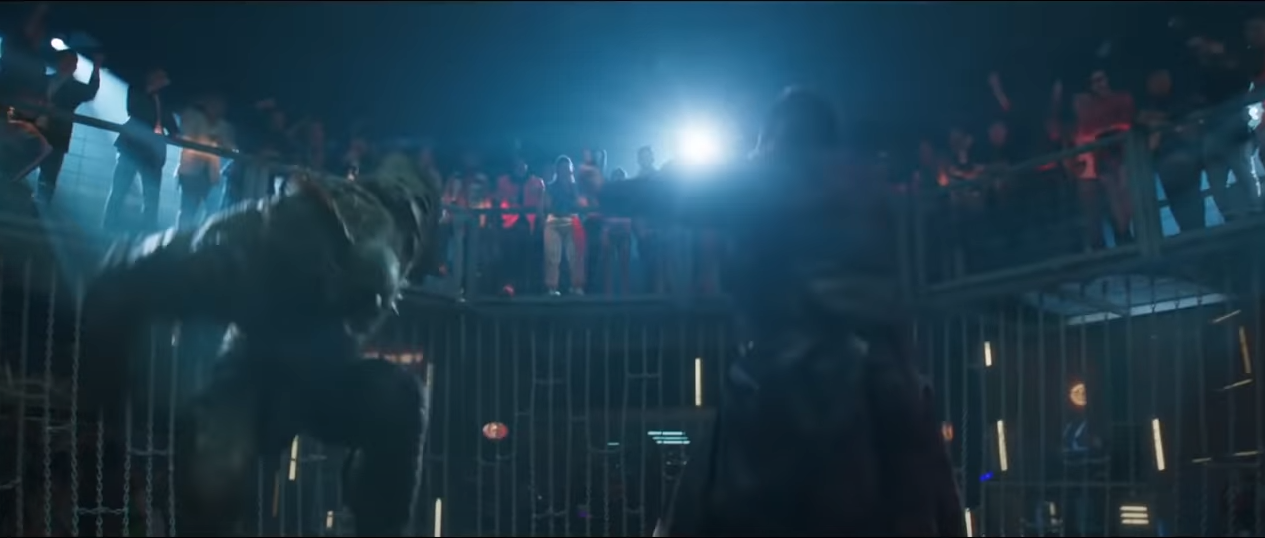 Then we move forward through a few random fights that show Shang-Chi in the final battle calling someone out. I assume it is his father. There is also a giant four legged beast that seems to be going to town on someone.