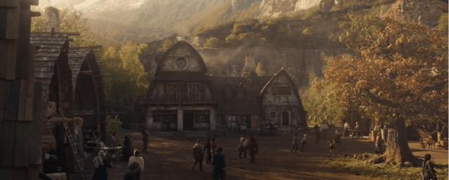 This is a nice shot of our three main male leads all enjoying a happy drink in what I assume is the Winespring Inn, their local tavern. I know some people are not happy with the casting but I really think this is spot on.