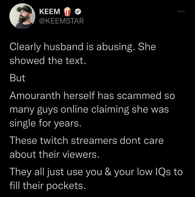 Fortunately it seems that the majority of the internet has come round to the fact that Amouranth was in an abusive relationship.