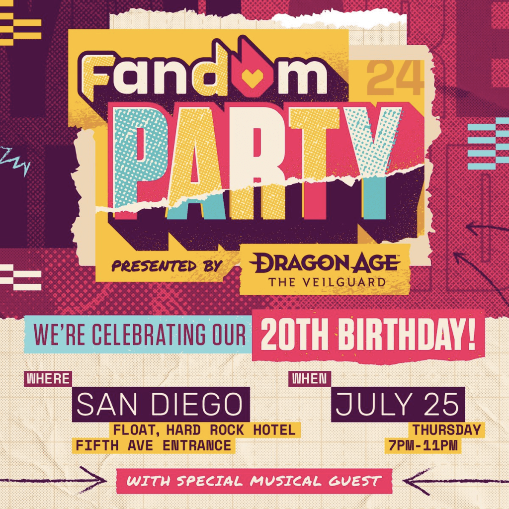 The party will be even more special this year as Fandom is turning 20. To celebrate, the party will kick off the festivities with special moments for attendees throughout the night.