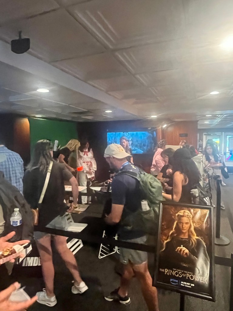 The first activation we stopped at was the LOTR: Rings of Power photo op where guests could put on wigs and hats, and hold various props while being photographed in front of a LOTR backdrop.