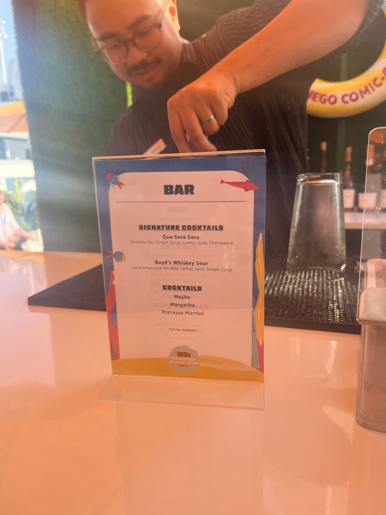 Guest were then ushered up to top deck where they could enjoy specialised cocktails and appetisers. The prosciutto wrapped shrimp was honestly the best canapé we have ever had at a Comic Con event, and we may have gone back for one (okay, several) more.