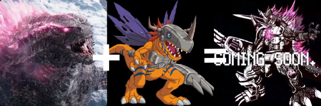 So far, the only information we have about this cross-over is this piece of art, which seems to be a combination of Metal Greymon and the newest American Godzilla.